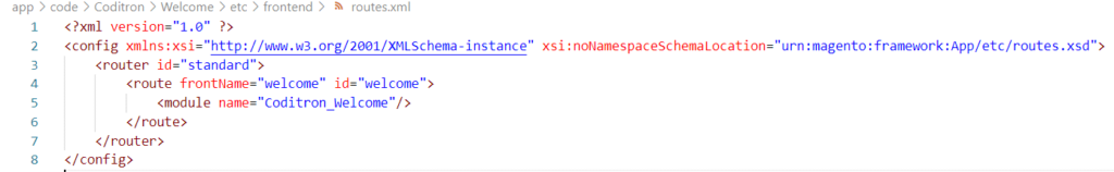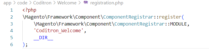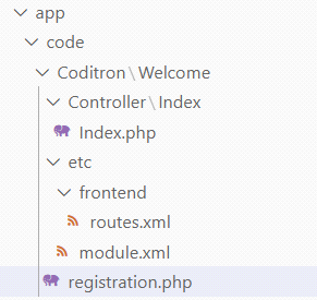 Now go to your Magento2 folder and create the module app/code/Coditron/Welcome